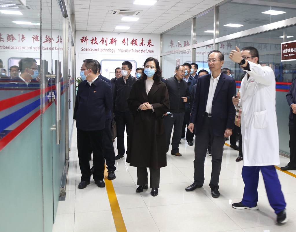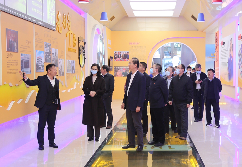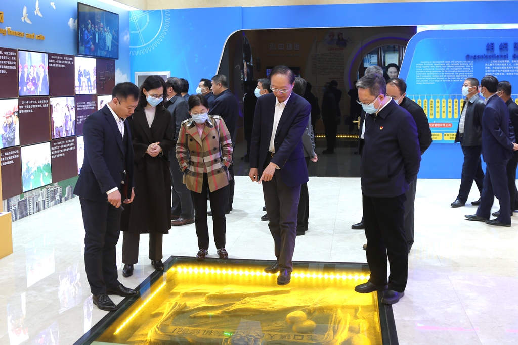 在公司展厅,韩金峰主席详细询问了企业发展情况,并认真听取了张海燕董事长关于打造企业发展新动能、科技创新及疫情防控等方面的情况汇报。